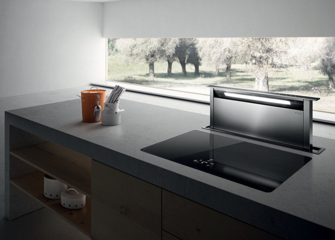 Downdraft dampkappen zijn de ideale oplossing voor wie een minimalistische en strakke keukenopstelling wil behouden. Deze innovatieve dampkappen verdwijnen in het werkblad wanneer ze niet worden gebruikt en komen omhoog tijdens het koken. Perfect voor kookeilanden of keukens waar design en functionaliteit centraal staan.